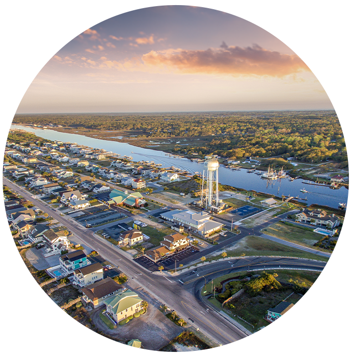 Holden Beach is a south facing island on the Southern coast of North Carolina, where the sun rises on your left and sets on your right. The island's unique position means that there is sun on the beach no matter what time of day, statistically speaking.