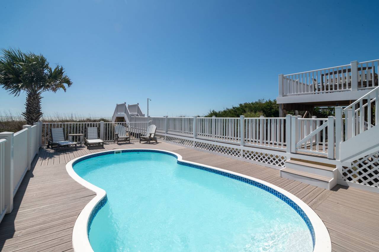 Outside you will find a saltwater pool with a heater and new Trex decking around the pool, boardwalk, and decks! Relax on the new and nicely appointed outdoor furniture and enjoy the ocean breeze. The view of the ocean and beach strand is unmatched! This home offers 5 bedrooms (3K, 2F, 1BB, 1PBB) and 4 bathrooms. Occupancy is limited to 12.