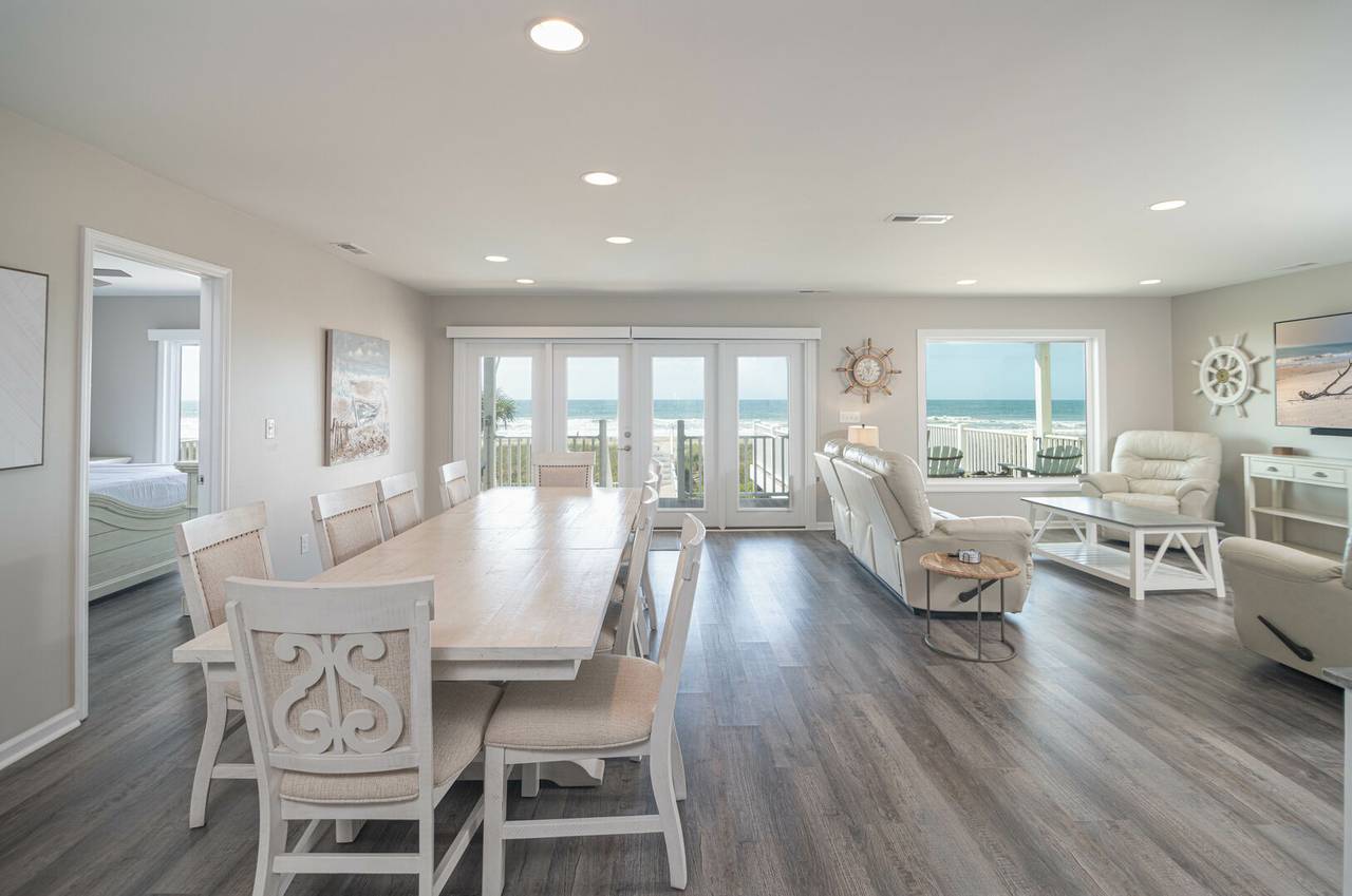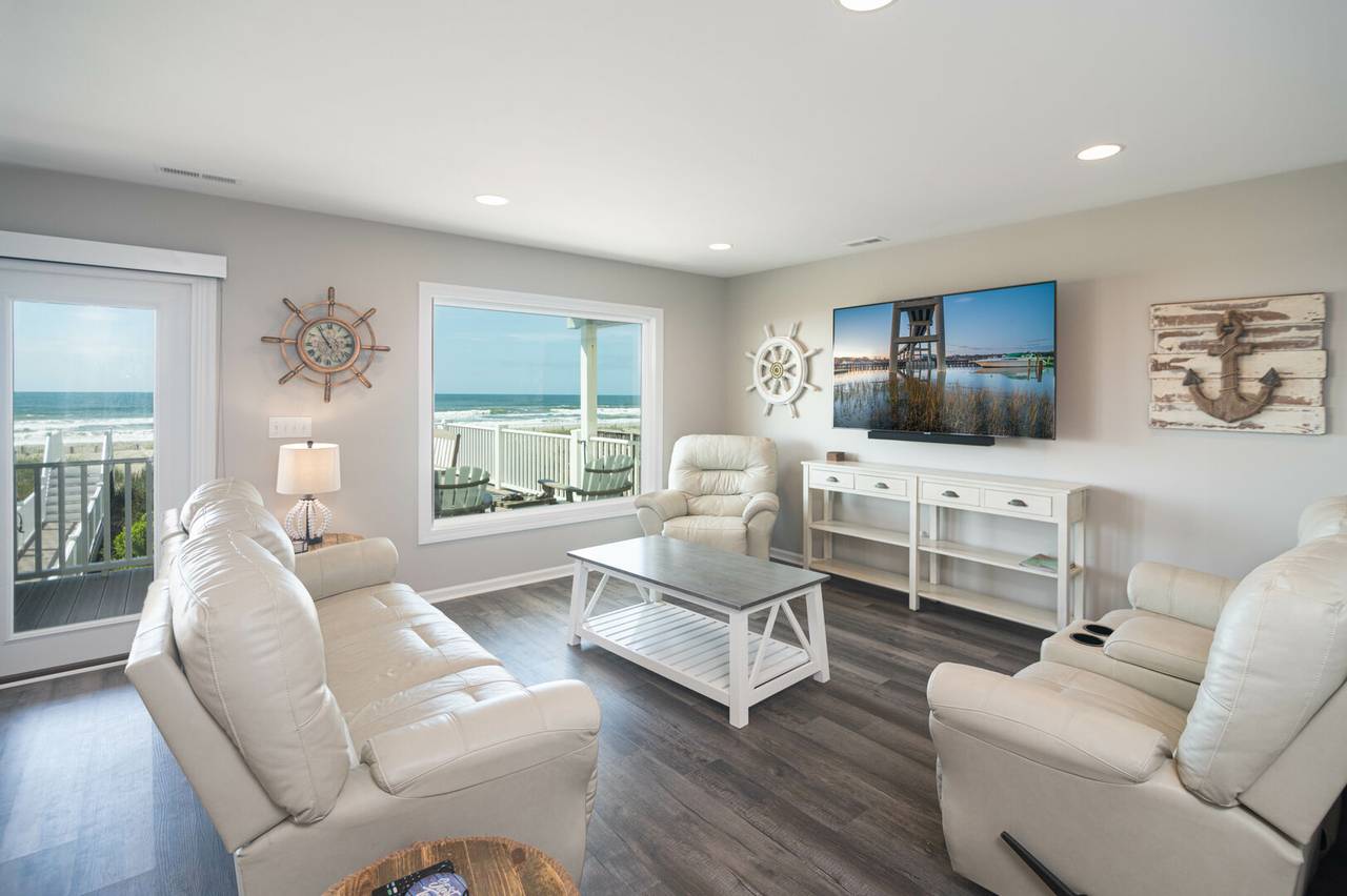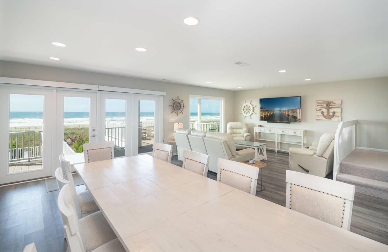 This oceanfront home is just waiting for you and your family! Inside, you will find LVP throughout, fresh interior paint, all-new decor, bathrooms, HVAC, and a completely remodeled kitchen with modern finishes and stainless steel appliances. As if that is not enough, all of the furniture is brand new including the mattresses! Updates also included installing glass doors on all the showers, remodeling the primary shower in full, and installing new windows and doors on the beach side of the house. Also, there are flat-screen TVs in all of the bedrooms to stream your favorite shows.